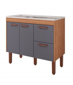 Balcão para Cozinha100% MDF Slim 1,14 Metros Freijó e Titanium - MGM Móveis