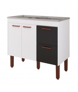 Balcão para Cozinha 100% MDF Slim 94cm Branco e Preto - MGM Móveis