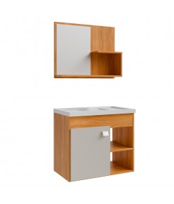 Kit Gabinete Madeira MDF Lótus com Espelheira e Cuba Cinamomo e Off White 55x47cm - MGM Móveis