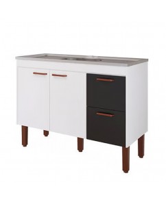Balcão para Cozinha 100% MDF Slim 1,14 Metros Branco e Preto - MGM Móveis