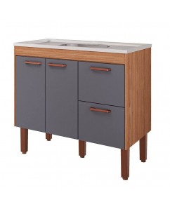 Balcão para Cozinha100% MDF Slim 1,14 Metros Freijó e Titanium - MGM Móveis