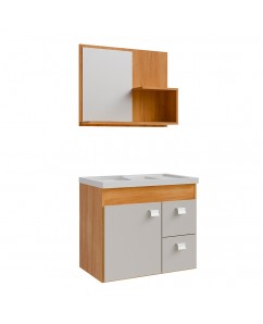 Kit Armário MDF Hortência 55cm Com Espelheira e Cuba Cinamomo e Off White - MGM Móveis