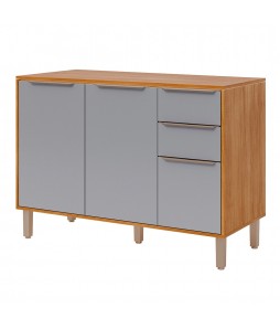 Balcão 100% MDF Divina Esplêndida Celeste Áurea 120x87cm 2 Portas 2 Gavetas Platina e Cinamomo - MGM Móveis