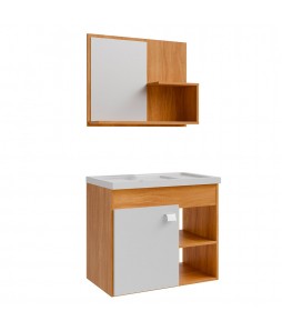 Kit Gabinete MDF Lótus 55x47cm com Espelheira e Cuba Cinamomo e Branco - MGM Móveis