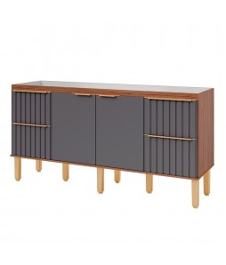 Balcão 100% MDF Ágata 174x88,5cm Freijó e Titanium - MGM Móveis